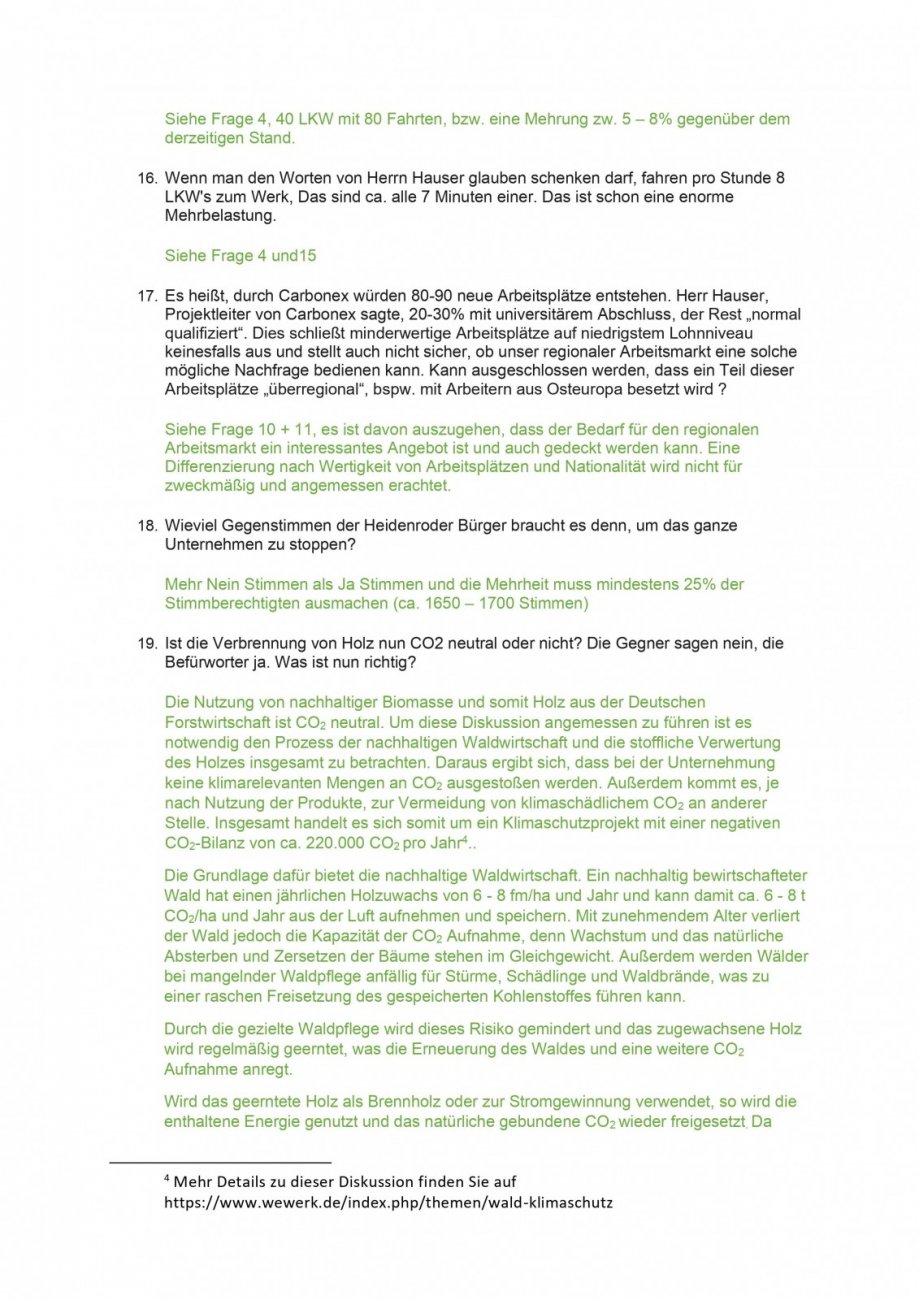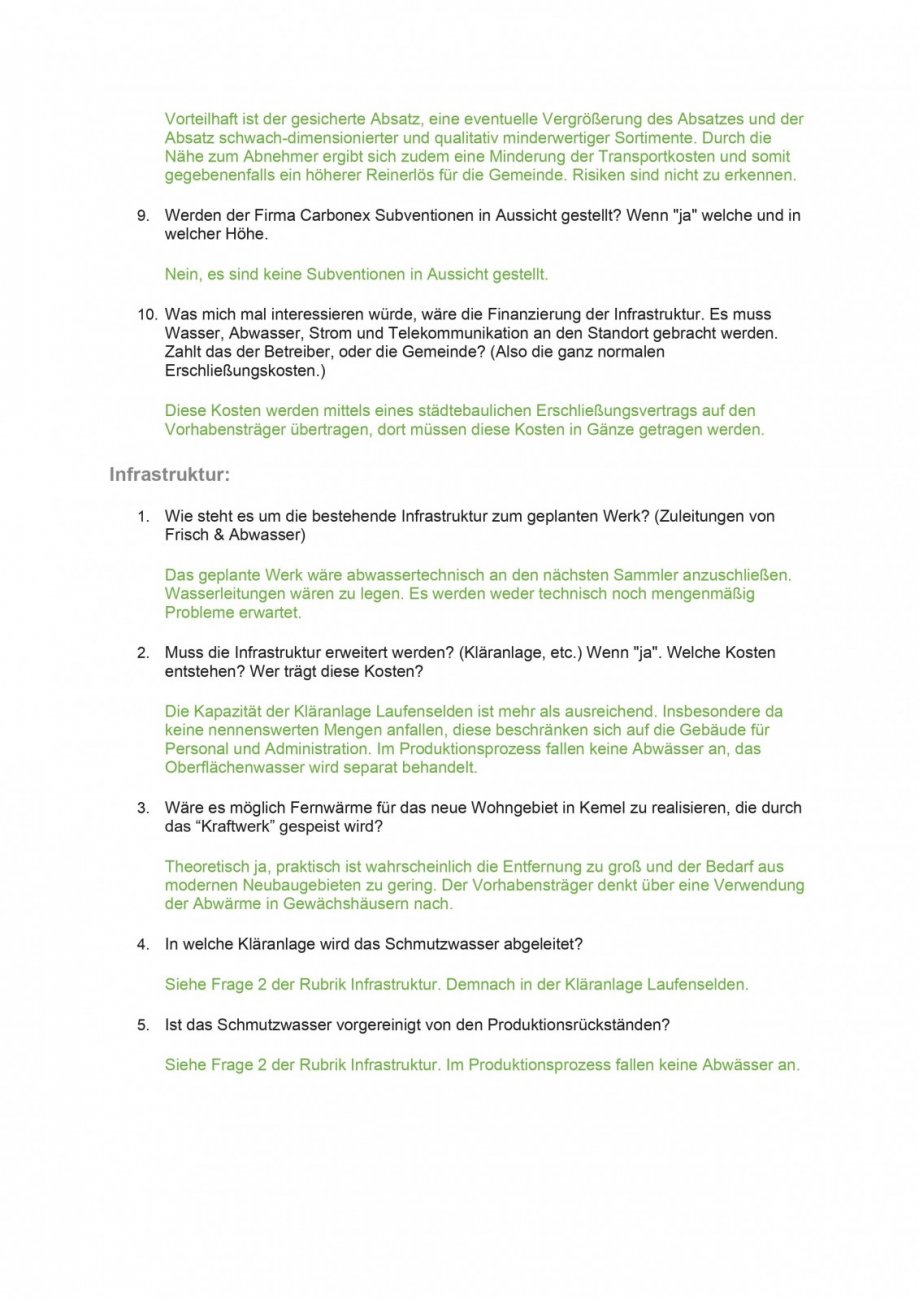 Es heißt, durch Carbonex würden 80-90 neue Arbeitsplätze entstehen. Herr Hauser, Projektleiter von Carbonex sagte, 20-30% mit universitärem Abschluss, der Rest „normal qualifiziert“. Dies schließt minderwertige Arbeitsplätze auf niedrigstem Lohnniveau keinesfalls aus und stellt auch nicht sicher, ob unser regionaler Arbeitsmarkt eine solche mögliche Nachfrage bedienen kann. Kann ausgeschlossen werden, dass ein Teil dieser Arbeitsplätze „überregional“, bspw. mit Arbeitern aus Osteuropa besetzt wird ?